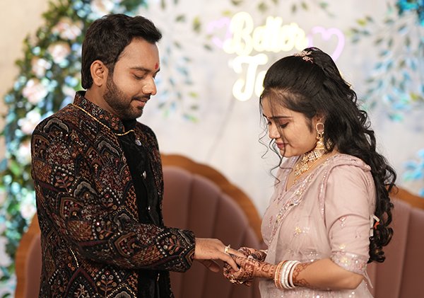 A joyful moment sealing love and commitment, sharing promises, laughter, and dreams, marking the beautiful beginning of forever together.